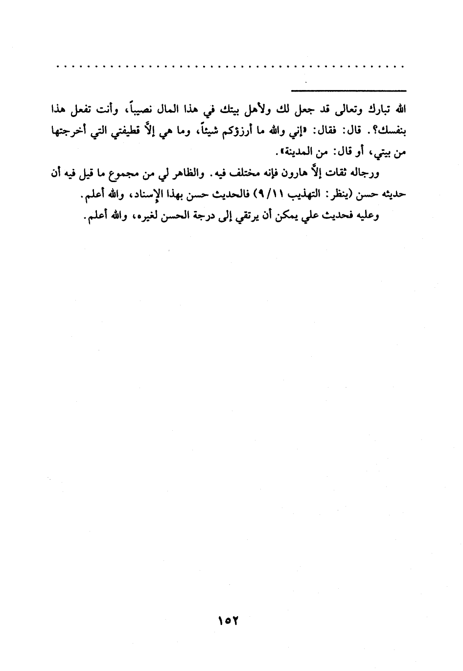 = الله تبارك وتعالى قد جعل لك ولأهل بيتك في هذا المال نصيبًا، وأنت تفعل هذا بنفسك؟. قال: فقال: "إني والله ما أرزؤكم شيئًا، وما هي إلَّا قطيفتي التي أخرجتها من بيتي، أو قال: من المدينة".