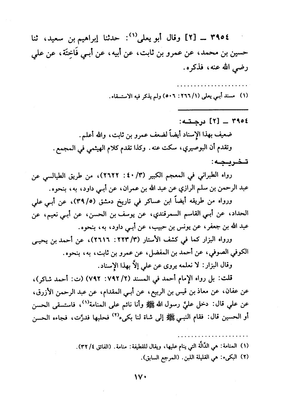 3954 - [2] وَقَالَ أَبُو يَعْلَى (¬1): حَدَّثَنَا إِبْرَاهِيمُ بْنُ سَعِيدٍ، ثنا حُسَيْنُ بْنُ محمَّد، عَنْ عَمْرِو بْنِ ثَابِتٍ، عَنْ أَبِيهِ، عَنْ أبي فَاخِتَة، عن علي رضي الله عنه، فذكره.