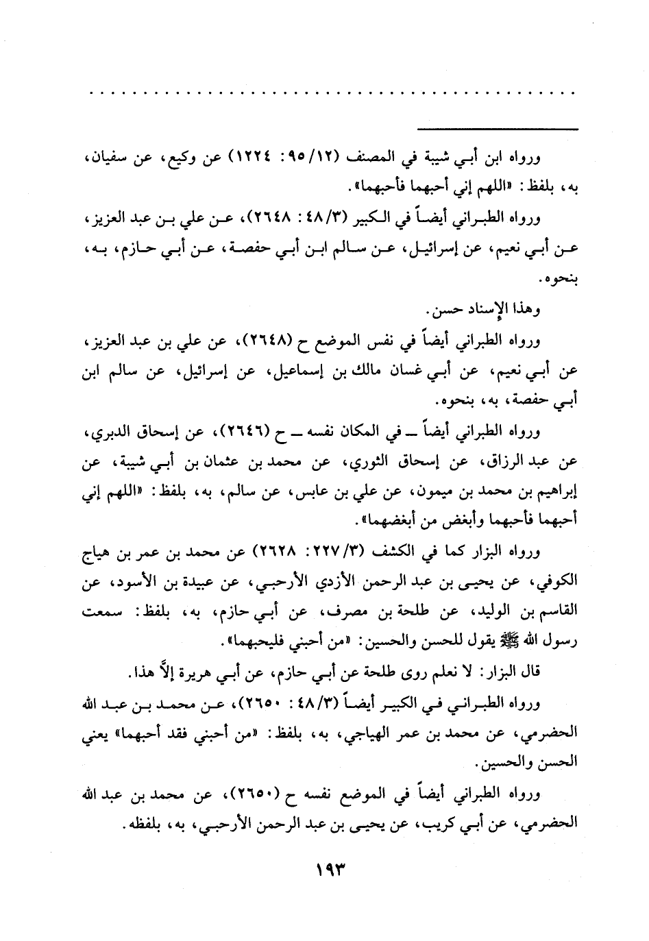 ورواه الطبراني في الكبير أيضًا (3/ 48: 2650)، عن محمَّد بن عبد الله الحضرمي، عن محمَّد بن عمر الهياجي، به، بلفظ: "من أحبني فقد أحبهما" يعني الحسن والحسين.