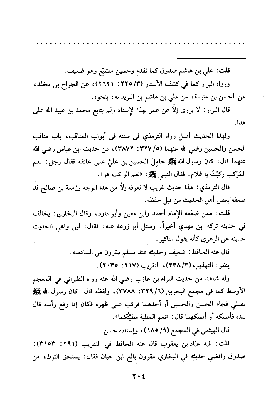 قلت: فيه عبّاد بن يعقوب قال عنه الحافظ في التقريب (291: 3153): صدوق رافضي حديثه في البخاري مقرون بالغ ابن حبّان فقال: يستحق الترك، من =