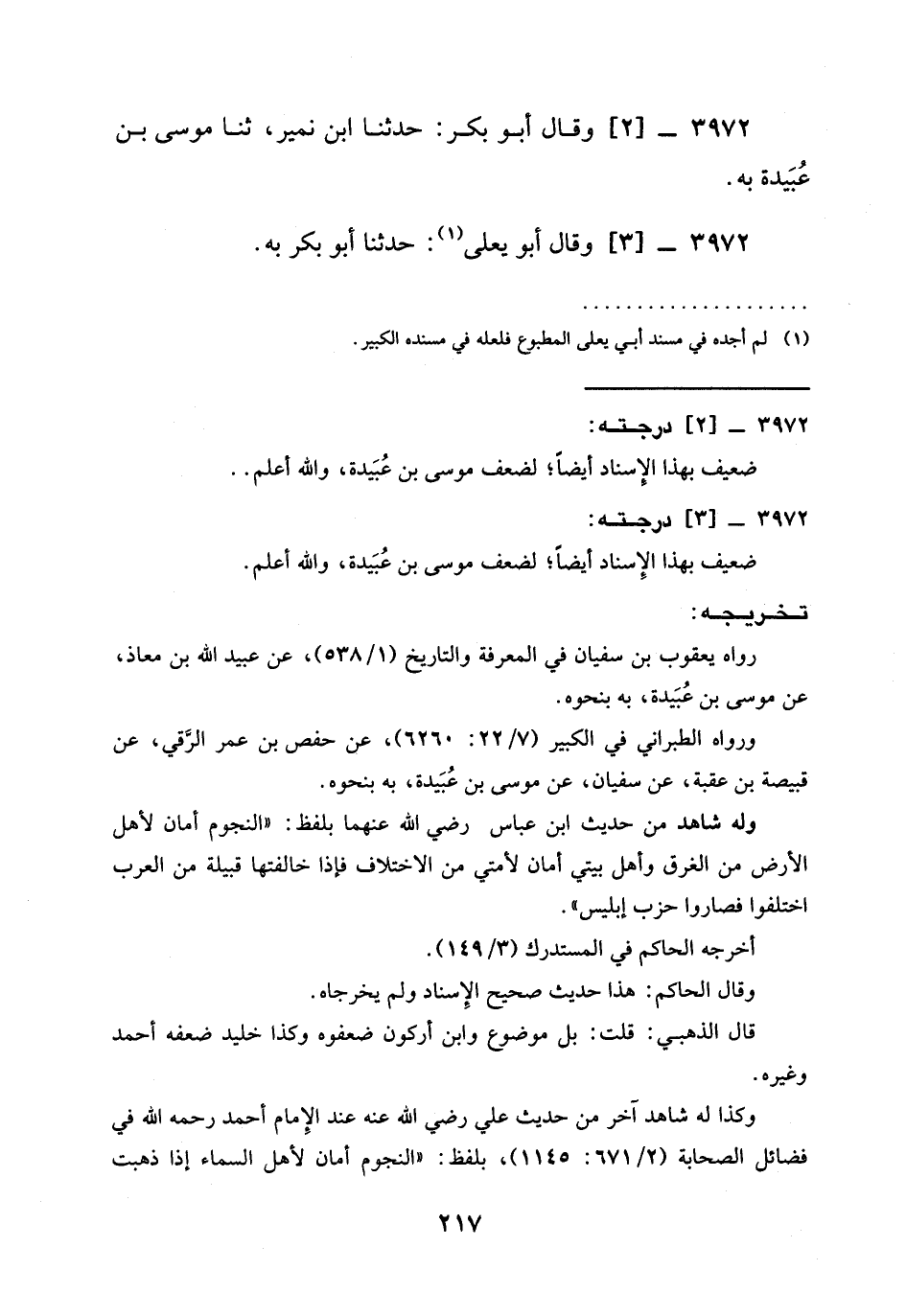 3972 - [2] وَقَالَ أَبُو بَكْرٍ: حَدَّثَنَا ابْنُ نُمَيْرٍ، ثنا مُوسَى بْنُ عُبَيدة بِهِ.