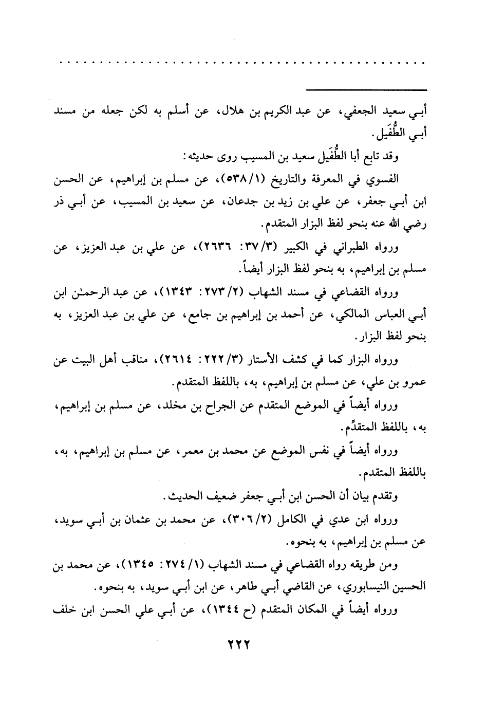 وقد تابع أبا الطُّفَيل سعيد بن المسيب روى حديثه: