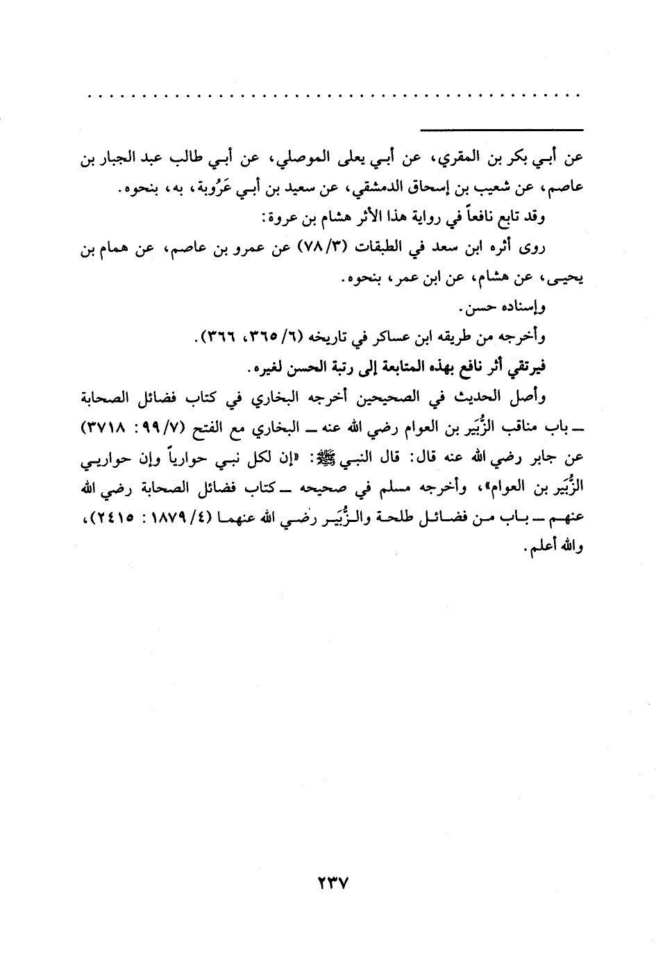 وأصل الحديث في الصحيحين أخرجه البخاري في كتاب فضائل الصحابة -باب مناقب الزُّبَير بن العوام رضي الله عنه- البخاري مع الفتح (7/ 99: 3718) عَنْ جَابِرٍ رَضِيَ اللَّهُ عَنْهُ قَالَ: قَالَ النَّبِيُّ -صَلَّى اللَّهُ عَلَيْهِ وَسَلَّمَ-: إن لكل نبي حواريًا وإن حواريي الزُّبَير بن العوام)، وأخرجه مسلم في صحيحه -كتاب فضائل الصحابة رضي الله عنهم- باب من فضائل طلحة والزُّبَير رضي الله عنهما (4/ 1879: 2415)، والله أعلم.