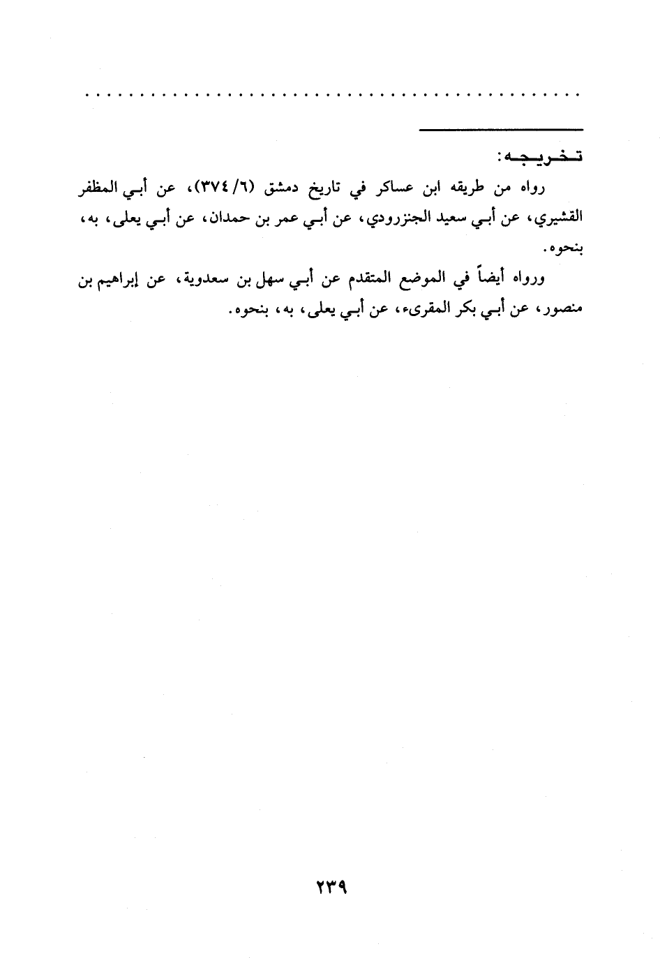 رواه من طريقه ابن عساكر في تاريخ دمشق (6/ 374)، عن أبي المظفر القشيري، عن أبي سعيد الجنزرودي، عن أبي عمر بن حمدان، عن أبي يعلى، به، بنحوه.