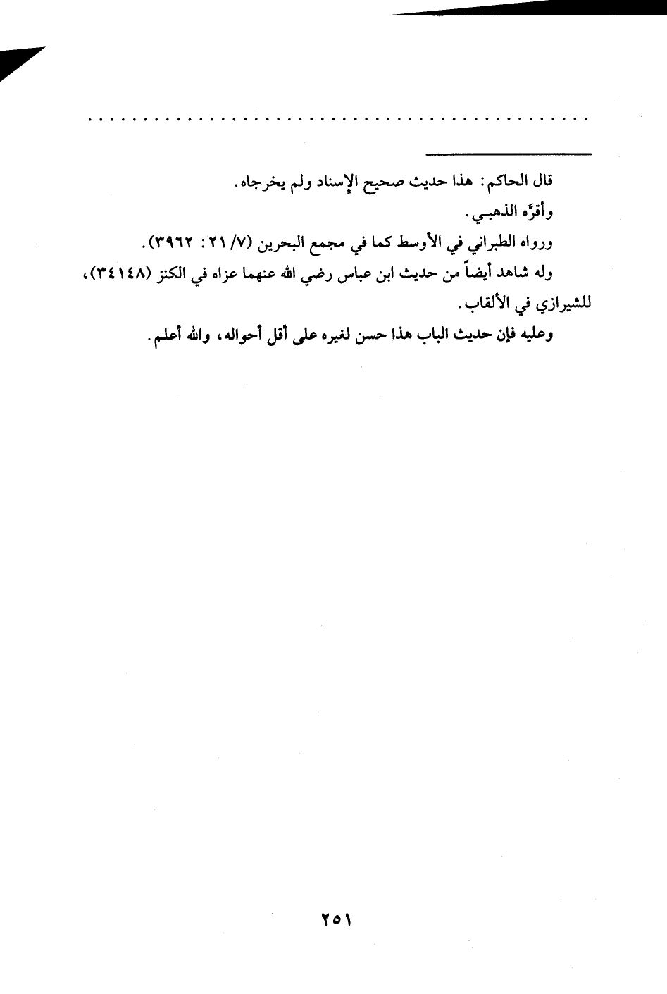 = قال الحاكم: هذا حديث صحيح الإِسناد ولم يخرجاه. وأقرَّه الذهبي.