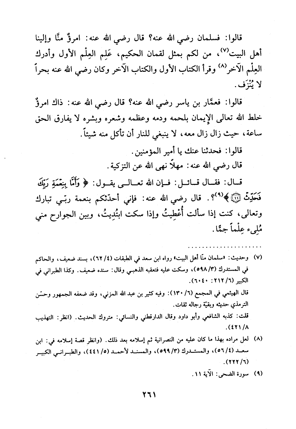 (¬7) وحديث: "سلمان منّا أهل البيت" رواه ابن سعد في الطبقات (4/ 62)، بسند ضعيف، والحاكم في المستدرك (3/ 598)، وسكت عليه فتعقبه الذهبي وقال: سنده ضعيف. وكذا الطبراني في الكبير (6/ 212: 6040).