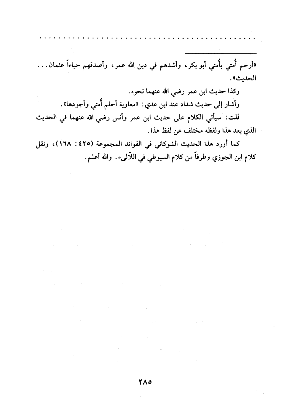وأشار إلى حديث شداد عند ابن عدي: "معاوية أحلم أُمتي وأجودها".