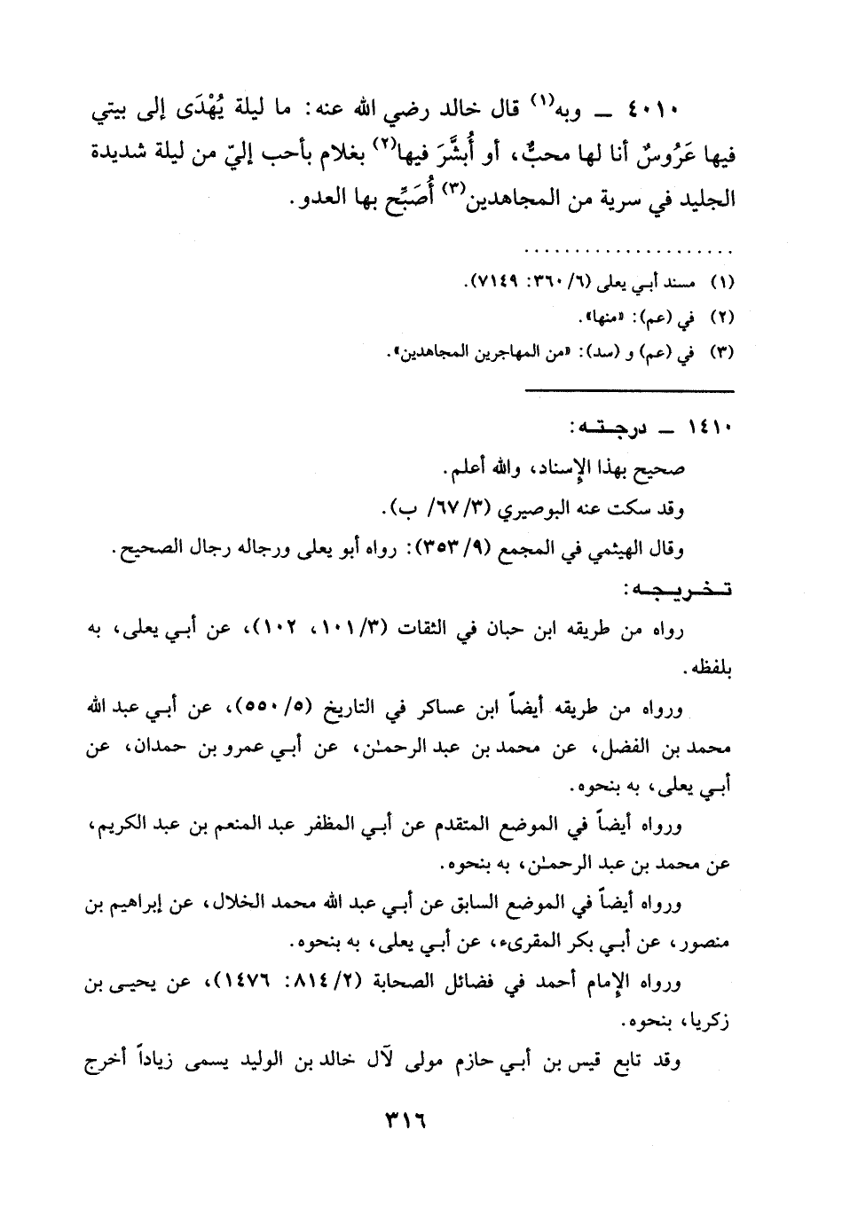 ورواه من طريقه أيضًا ابن عساكر في التاريخ (5/ 550)، عن أبي عبد الله محمَّد بن الفضل، عن محمد بن عبد الرحمن، عن أبي عمرو بن حمدان، عن أبي يعلى، به بنحوه.