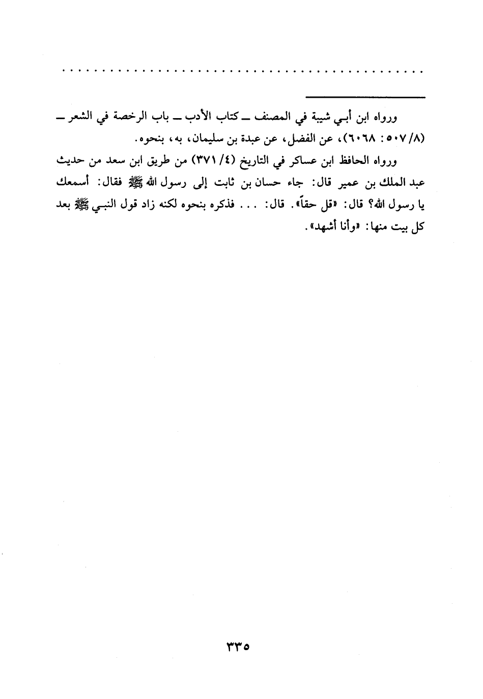 = ورواه ابن أبي شيبة في المصنف -كتاب الأدب- باب الرخصة في الشعر- (8/ 507: 6068)، عن الفضل، عن عبدة بن سليمان، به، بنحوه.