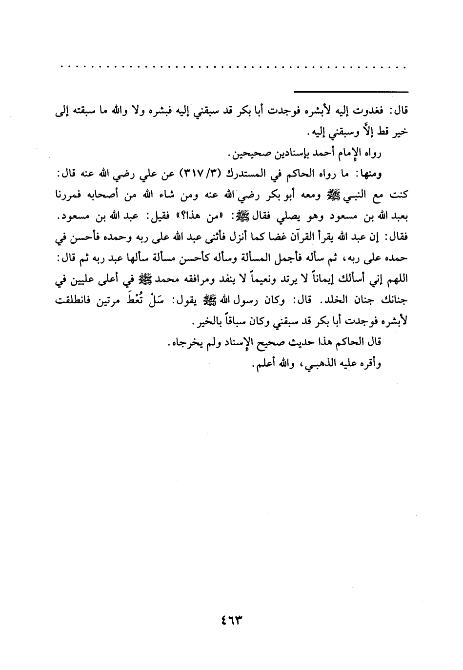 = قال: فغدوت إليه لأبشره فوجدت أبا بكر قد سبقني إليه فبشره ولا والله ما سبقته إلى خير قط إلَّا وسبقني إليه.
