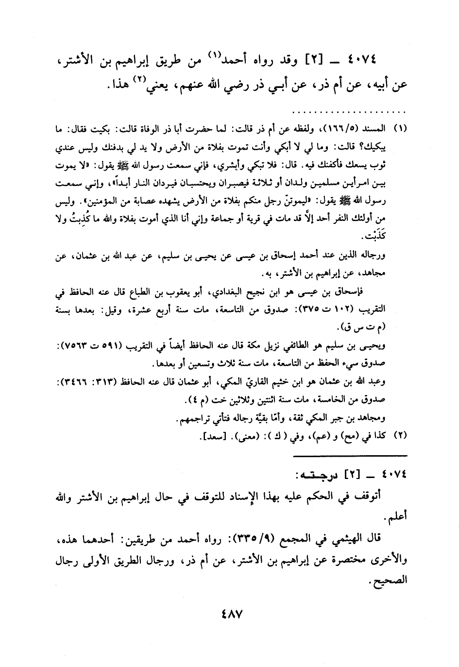 4074 - [2] وَقَدْ رَوَاهُ أَحْمَدُ (¬1) مِنْ طَرِيقِ إِبْرَاهِيمَ بْنِ الْأَشْتَرِ، عَنْ أَبِيهِ، عَنْ أُمِّ ذَرٍّ، عَنْ أبي ذر رضي الله عنهم، يعني (¬2) هذا.