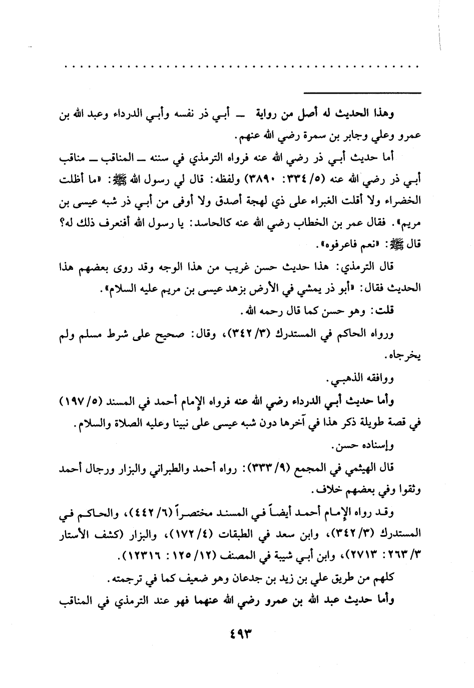قال الترمذي: هذا حديث حسن غريب من هذا الوجه وقد روى بعضهم هذا الحديث فقال: "أبو ذر يمشي في الأرض بزهد عيسى بن مريم عليه السلام".