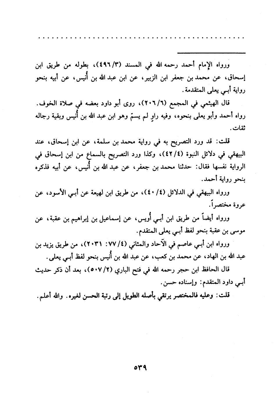 قلت: وعليه فالمختصر يرتقي بأصله الطويل إلى رتبة الحسن لغيره. والله أعلم.