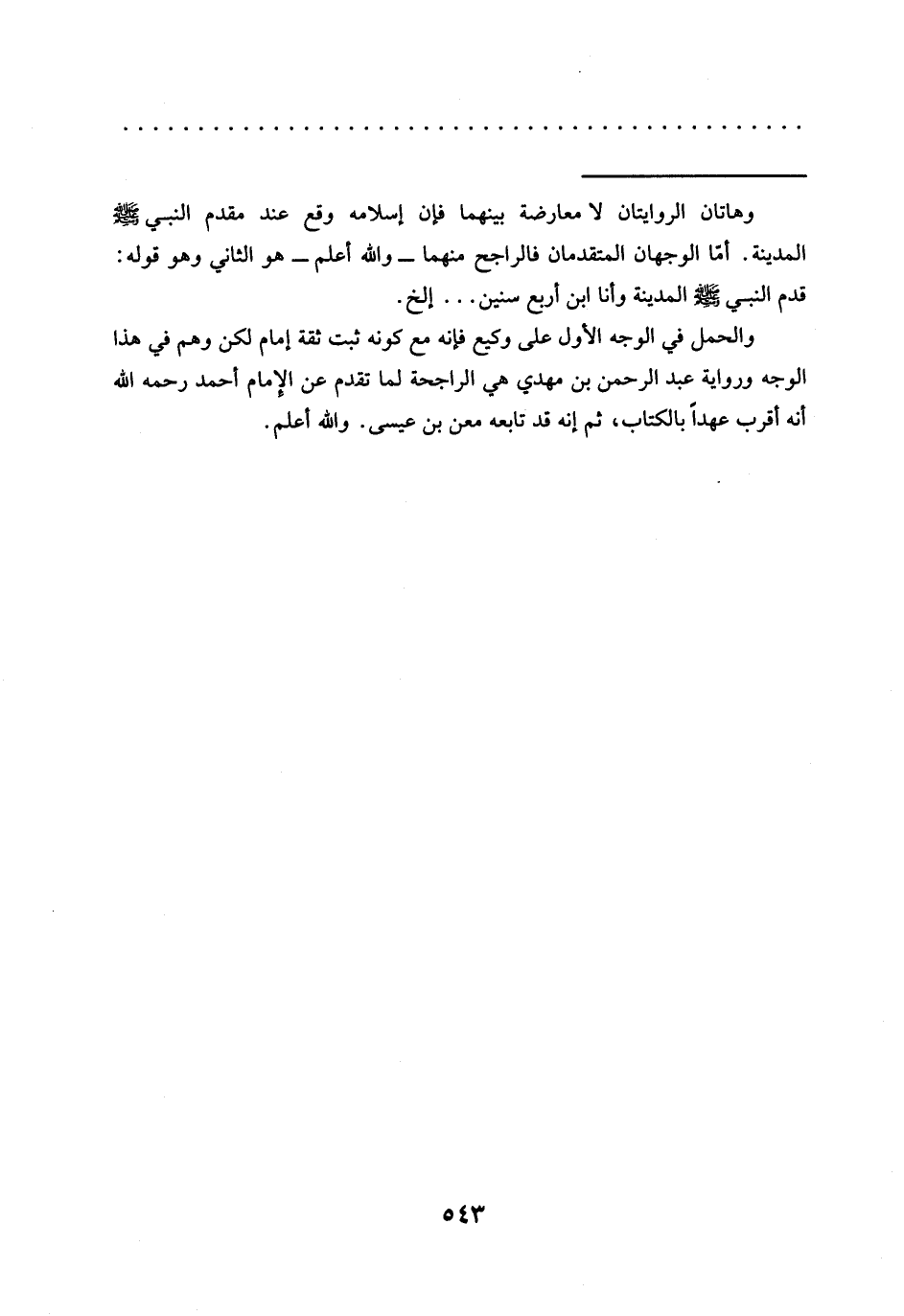 = وهاتان الروايتان لا معارضة بينهما فإن إسلامه وقع عند مقدم النبي -صلى الله عليه وسلم- المدينة. أمّا الوجهان المتقدمان فالراجح منهما -والله أعلم- هو الثاني وهو قوله: قَدِمَ النَّبِيُّ -صَلَّى اللَّهُ عَلَيْهِ وَسَلَّمَ- الْمَدِينَةَ وأنا ابن أربع سنين ... إلخ.