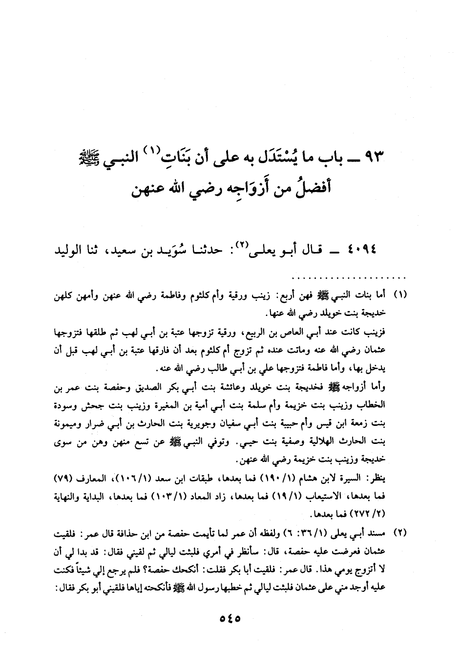 4094 - قَالَ أَبُو يَعْلَى: حَدَّثَنَا سُوَيْدُ بْنُ سَعِيدٍ، ثنا الْوَلِيدُ -[546]- بن مُحَمَّدٍ، عَنِ الزُّهْرِيِّ، عَنْ سَالِمٍ، عَنْ أَبِيهِ قَالَ: إِنَّ عُمَرَ رَضِيَ الله عَنْه قَالَ: قَالَ رَسُولُ اللَّهِ صَلَّى اللَّهُ عَلَيْهِ وَسَلَّمَ: " §تُزَوَّجُ حَفْصَةُ خَيْرا مِنْ عُثْمَانَ، وَيُزَوَّجُ عُثْمَانُ خَيْرًا مِنْ حَفْصَةَ " فَزَوَّجَهُ صَلَّى اللَّهُ عَلَيْهِ وَسَلَّمَ ابْنَتَهُ.