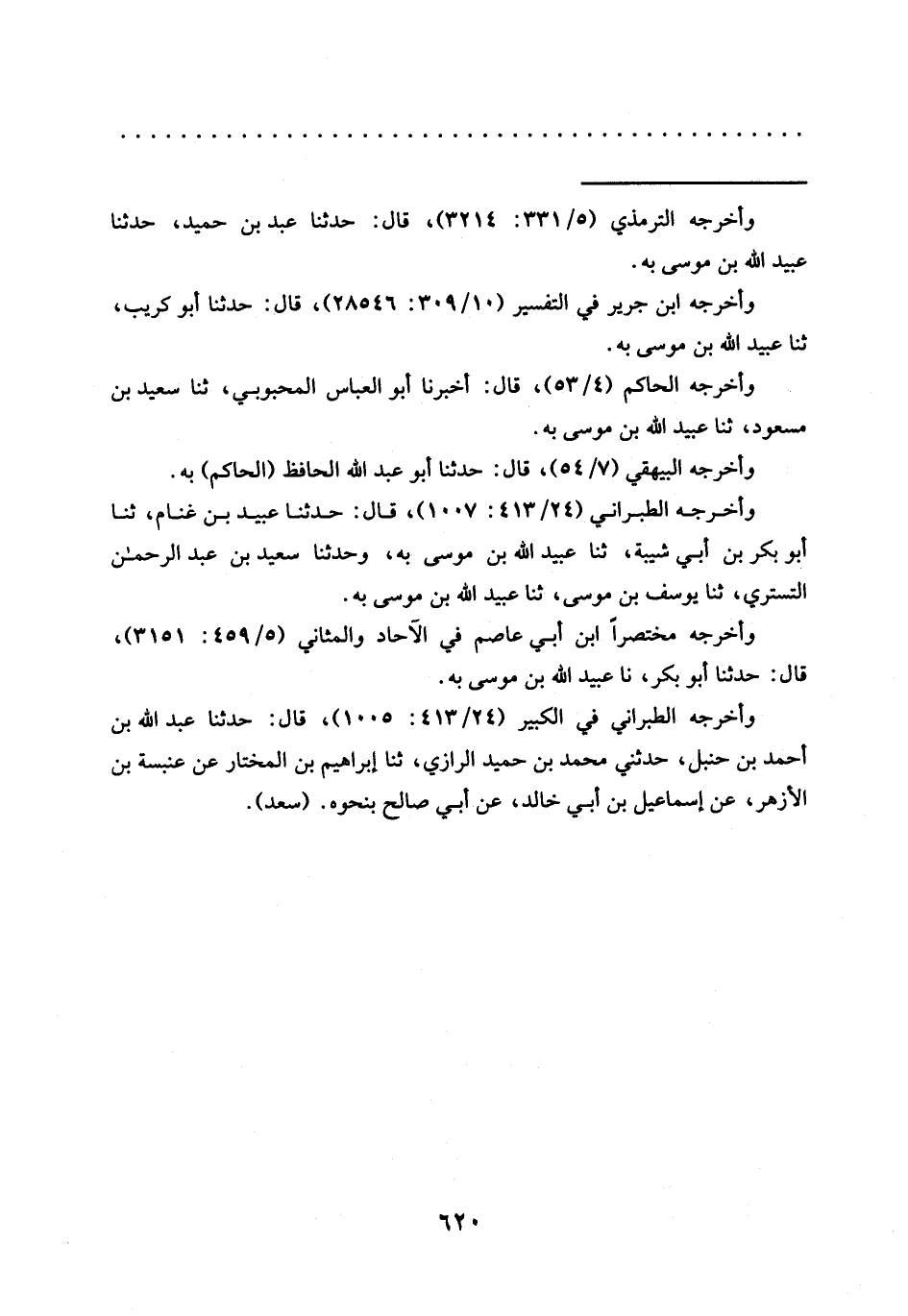 = وأخرجه الترمذي (5/ 331: 3214)، قال: حدّثنا عَبْدُ بْنُ حُمَيْدٍ، حَدَّثَنَا عُبَيْدُ اللَّهِ بْنُ موسى به.
