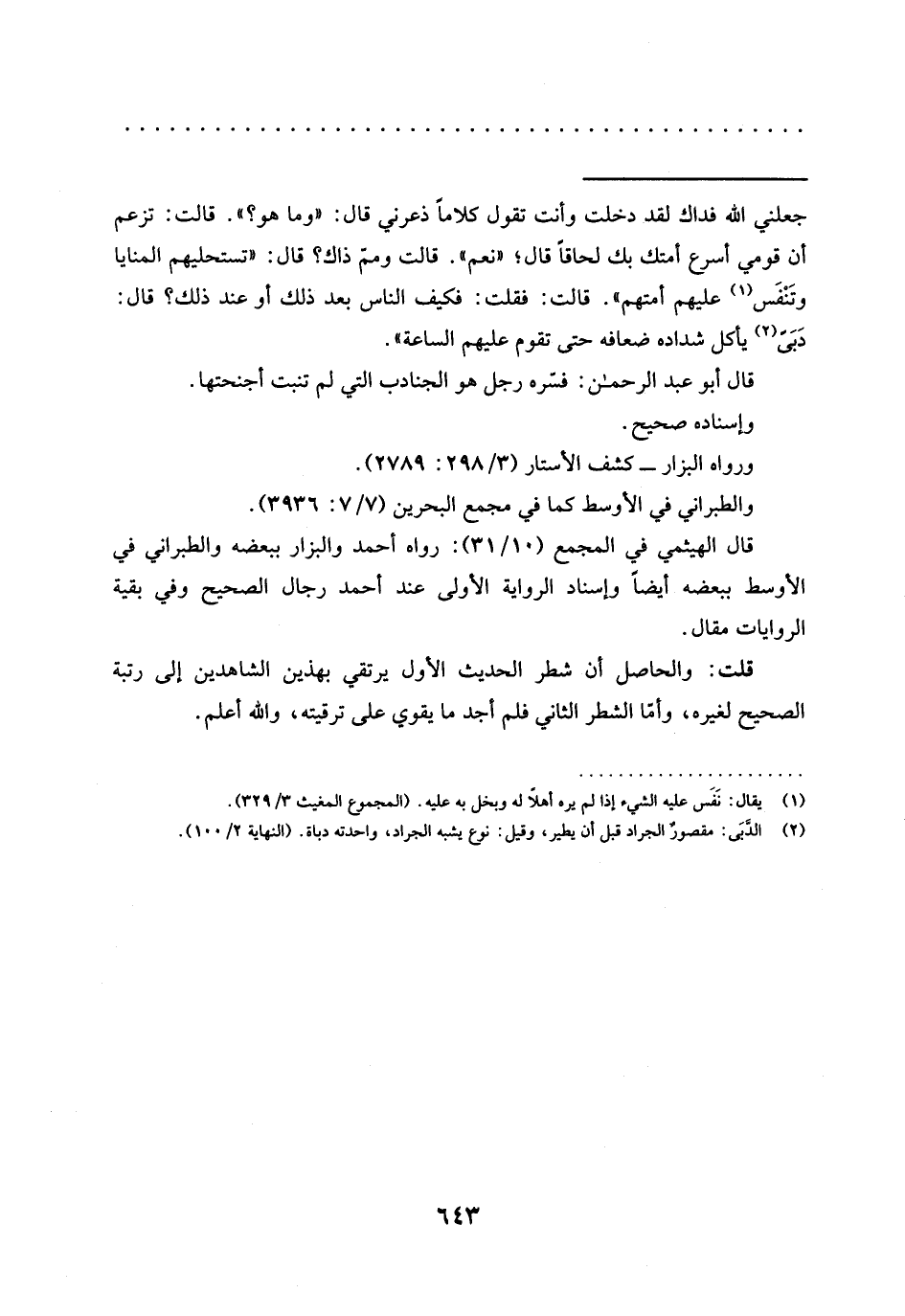 قلت: والحاصل أن شطر الحديث الأول يرتقي بهذين الشاهدين إلى رتبة الصحيح لغيره، وأمّا الشطر الثاني فلم أجد ما يقوي على ترقيته، والله أعلم.