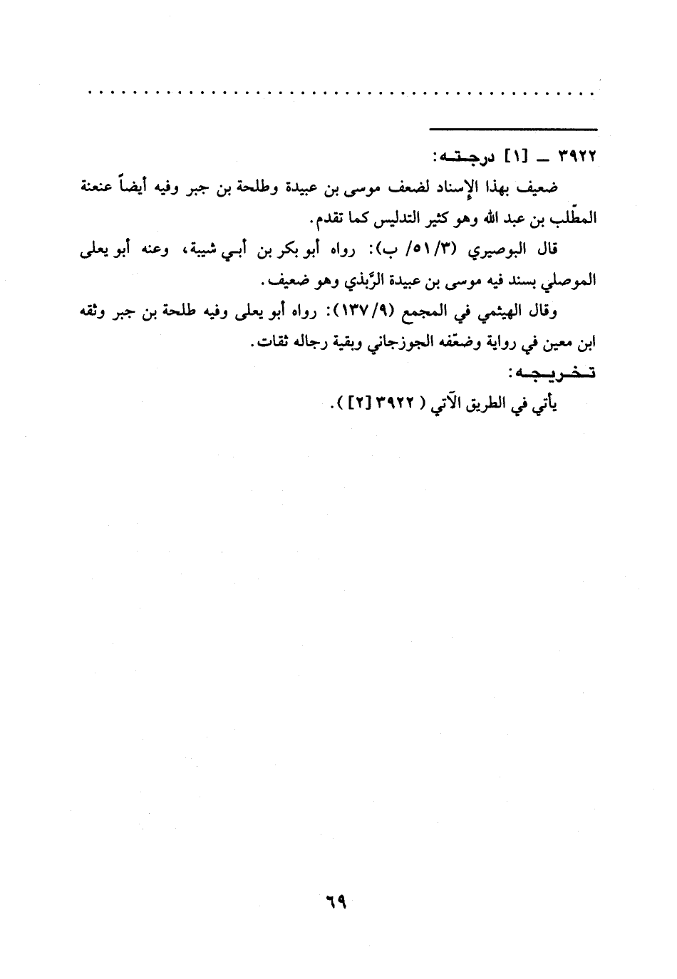 قال البوصيري (3/ 51/ب): رواه أبو بكر بن أبي شيبة، وعنه أبو يعلى الموصلي بسند فيه موسى بن عبيدة الزَّبذي وهو ضعيف.