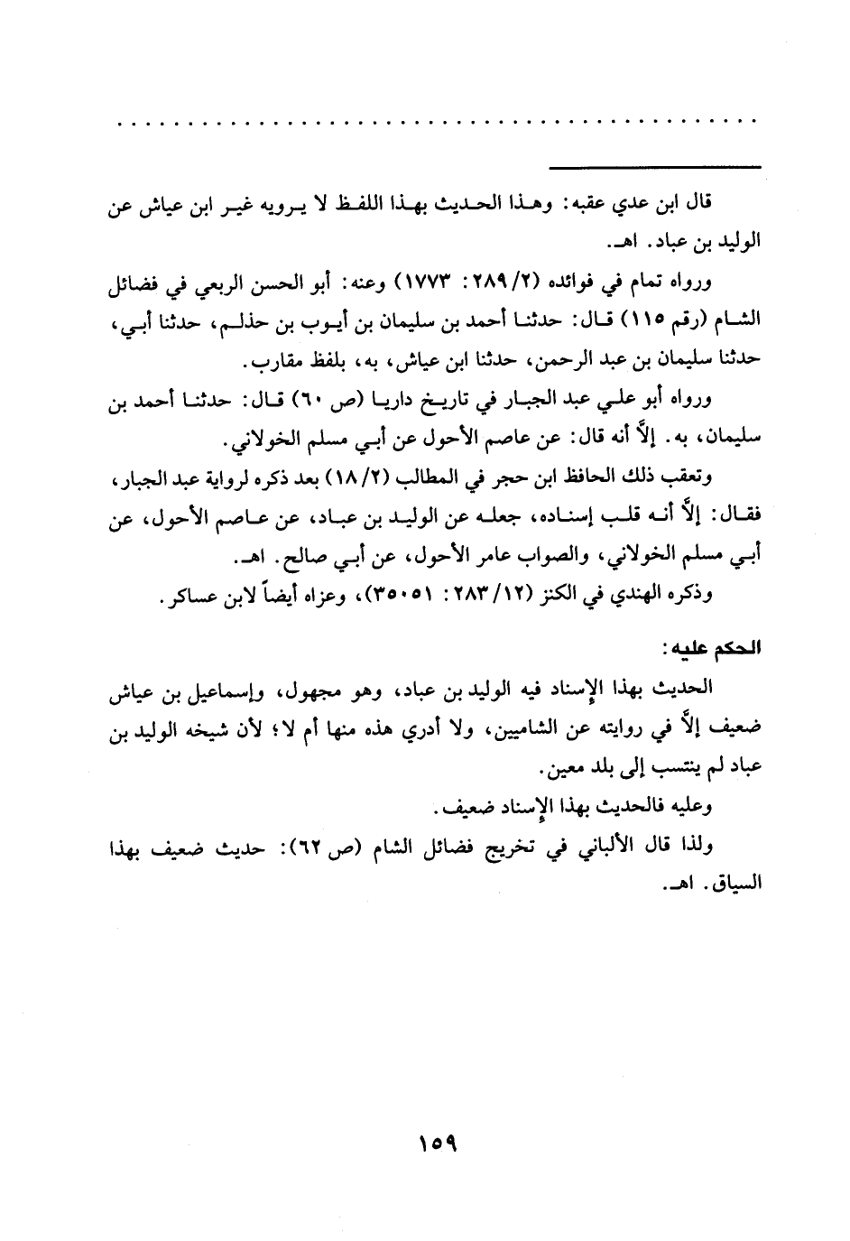 ولذا قال الألباني في تخريج فضائل الشام (ص 62): حديث ضعيف بهذا السياق. اهـ.