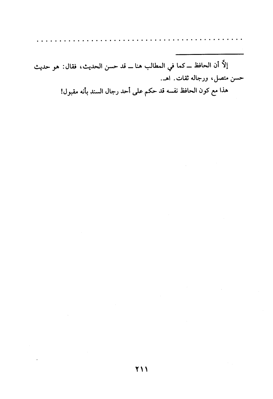 هذا مع كون الحافظ نفسه قد حكم على أحد رجال السند بأنه مقبول!