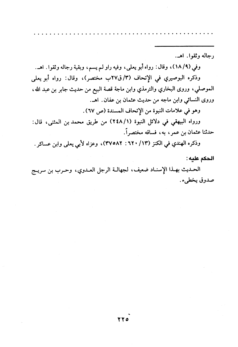 وذكره البوصيري في الإتحاف (3/ ق 27ب مختصر)، وقال: رواه أبو يعلى الموصلي، وروى البخاري والترمذي وابن ماجة قصة البيع من حديث جابر بن عبد الله، وروى النسائي وابن ماجه من حديث عثمان بن عفان. اهـ.