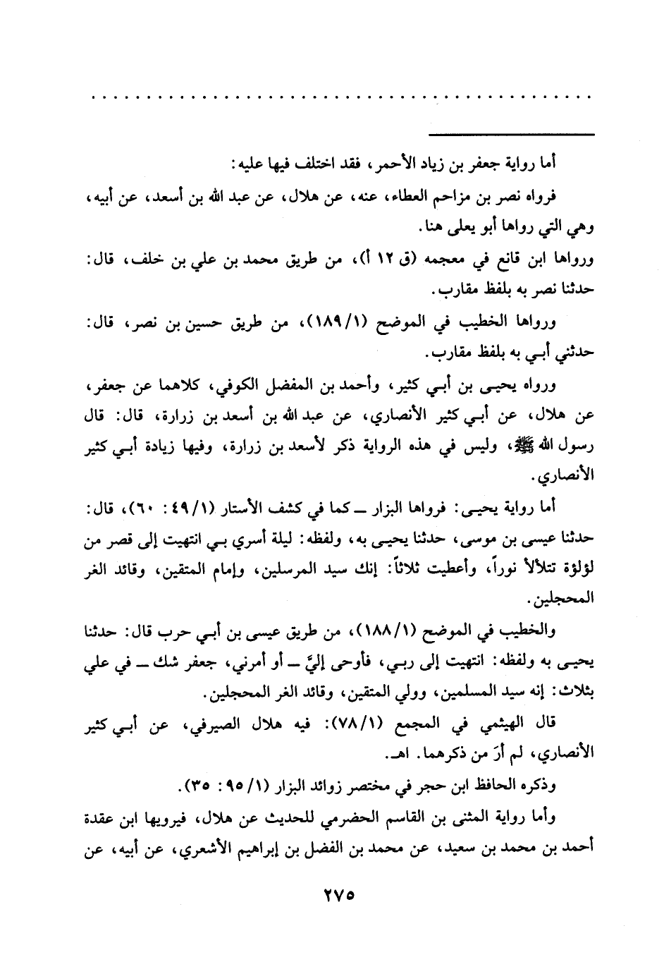 وأما رواية المثنى بن القاسم الحضرمي للحديث عن هلال، فيرويها ابن عقدة أحمد بن محمد بن سعيد، عن محمد بن الفضل بن إبراهيم الأشعري، عن أبيه، عن =