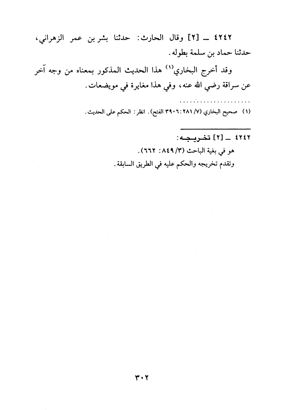 4242 - [2] وقال الحارث: حدّثنا بشر بن عمر الزهراني، حدّثنا حماد بن سلمة بطوله.
