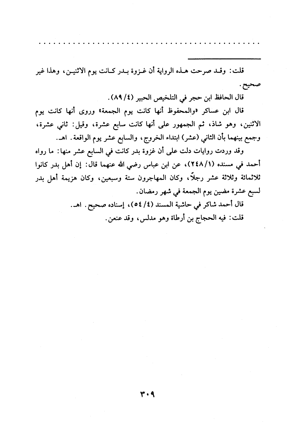 = قلت: وقد صرحت هذه الرواية أن غزوة بدر كانت يوم الاثنين، وهذا غير صحيح.
