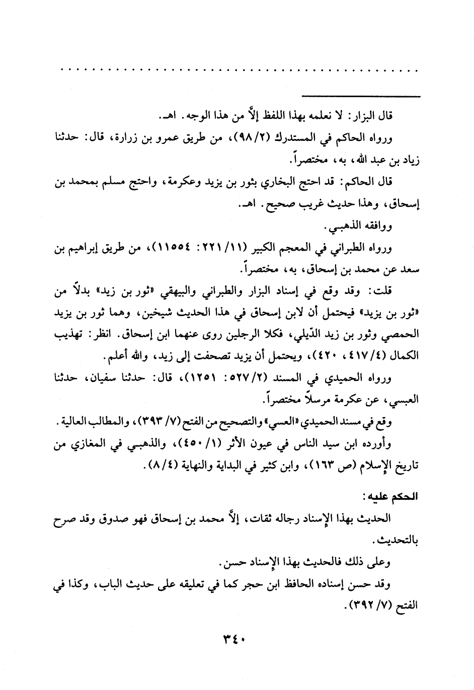 قال الحاكم: قد احتج البخاري بثور بن يزيد وعكرمة، واحتج مسلم بمحمد بن إسحاق، وهذا حديث غريب صحيح. اهـ.
