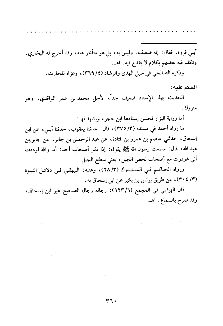 ما رواه أحمد في مسنده (3/ 375)، قال: حدّثنا يعقوب، حدّثنا أبي، عن ابن إسحاق، حدثني عاصم بن عمرو بن قتادة، عن عبد الرحمن بن جابر، عن جابر بن عبد اللَّهِ، قَالَ: سَمِعْتُ رَسُولَ اللَّهِ -صَلَّى اللَّهُ عليه وسلم- يقول: إذا ذكر أصحاب أحد: أما والله لوددت أني غودرت مع أصحاب نحص الجبل، يعني سطح الجبل.
