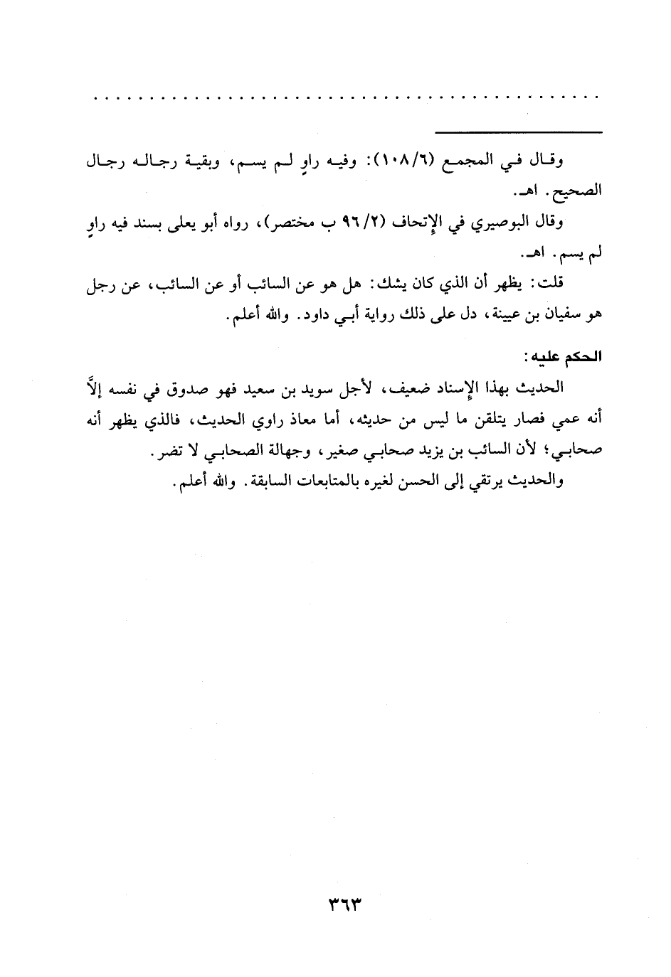 = وقال في المجمع (6/ 108): وفيه راوٍ لم يسم، وبقية رجاله رجال الصحيح. اهـ.