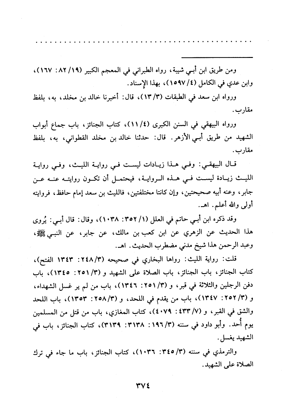 قلت: رواية الليث: رواها البخاري في صحيحه (3/ 248: 1343 الفتح)، كتاب الجنائز، باب الجنائز، باب الصلاة على الشهيد و (3/ 251: 1345)، باب دفن الرجلين والثلاثة في قبر، و (3/ 251: 1346)، باب من لم ير غسل الشهداء، و (3/ 252: 1347)، باب من يقدم في اللحد، و (3/ 258: 1353)، باب اللحد والشق في القبر، و (7/ 433: 4079)، كتاب المغازي، باب من قتل من المسلمين يوم أُحد. وأبو داود في سننه (3/ 196: 3138: 3139)، كتاب الجنائز، باب في الشهيد يغسل.