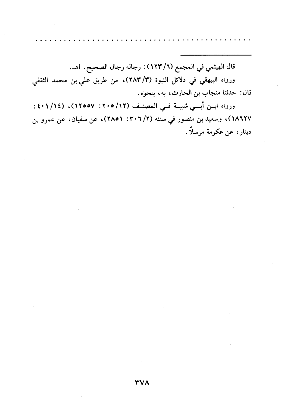 ورواه ابن أبي شيبة في المصنف (12/ 205: 12557)، (14/ 401: 18627)، وسعيد بن منصور في سننه (2/ 306: 2851)، عن سُفْيَانُ، عَنْ عَمْرِو بْنِ دِينَارٍ، عَنْ عِكْرِمَةَ مرسلًا.