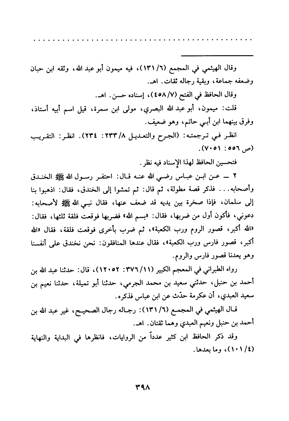 = وقال الهيثمي في المجمع (6/ 131)، فيه ميمون أبو عبد الله، وثقه ابن حبّان وضعفه جماعة، وبقية رجاله ثقات. اهـ.