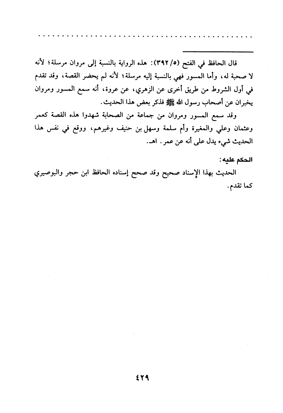 = قال الحافظ في الفتح (5/ 392): هذه الرواية بالنسبة إلى مروان مرسلة؛ لأنه لا صحبة له، وأما المسور فهي بالنسبة إليه مرسلة؛ لأنه لم يحضر القصة، وقد تقدم في أول الشروط من طريق أخرى عن الزهري، عن عروة، أنه سمع المسور ومروان يخبران عَنْ أَصْحَابِ رَسُولِ اللَّهِ -صَلَّى اللَّهُ عَلَيْهِ وسلم- فذكر بعض هذا الحديث.