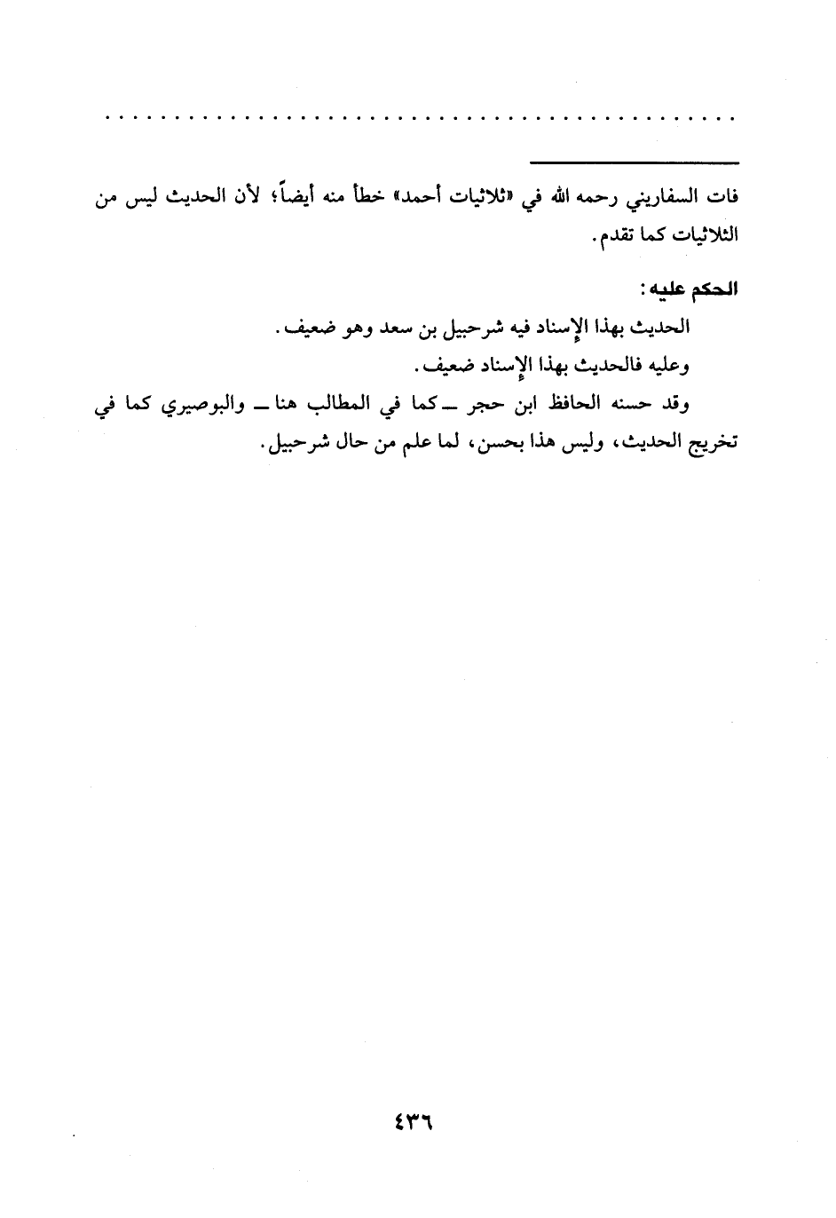 = فات السفاريني رحمه الله في "ثلاثيات أحمد" خطأ منه أيضًا؛ لأن الحديث ليس من الثلاثيات كما تقدم.
