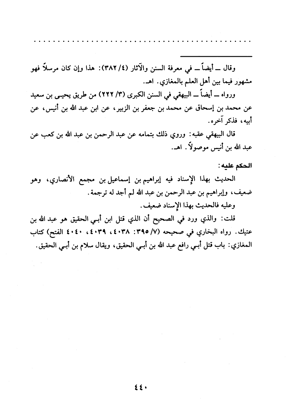 قلت: والذي ورد في الصحيح أن الذي قتل ابن أبي الحقيق هو عبد الله بن عتيك. رواه البخاري في صحيحه (7/ 395: 4038، 4039، 4040 الفتح) كتاب المغازي: باب قتل أبي رافع عبد الله بن أبي الحقيق، ويقال سلام بن أبي الحقيق.