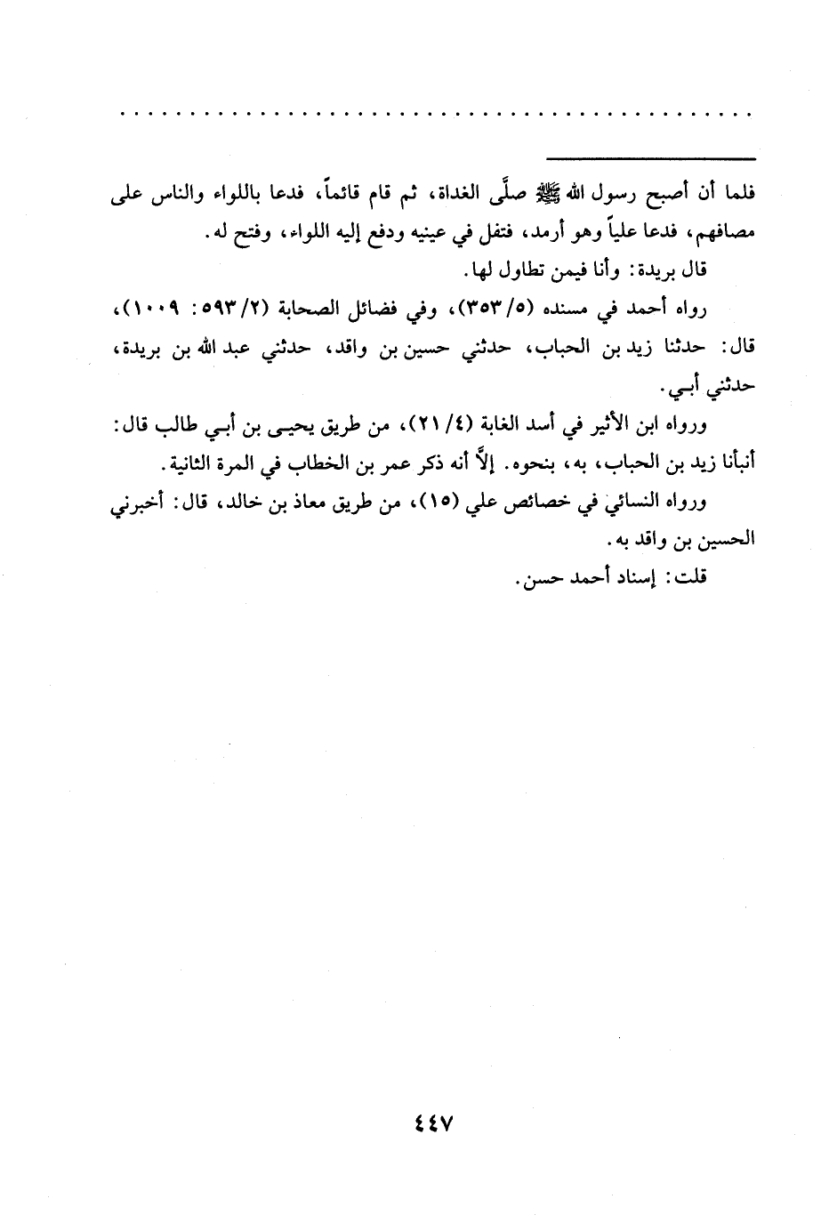 رواه أحمد في مسنده (5/ 353)، وفي فضائل الصحابة (2/ 593: 1009)، قال: حدّثنا زيد بن الحباب، حدثني حسين بن واقد، حدثني عبد الله بن بريدة، حدثني أبي.