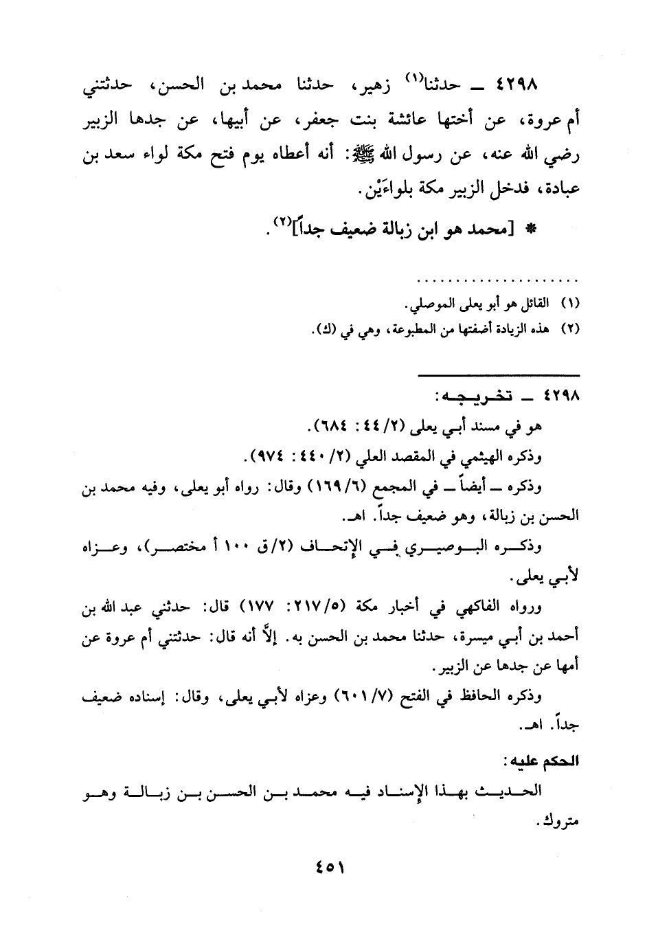 [مُحَمَّدٌ هُوَ ابْنُ زَبَالَةَ ضَعِيفٌ جِدًّا] .