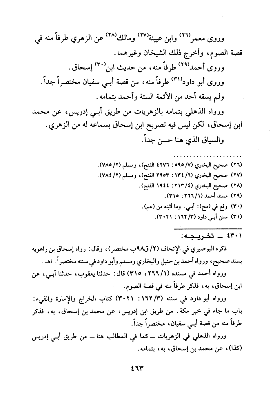 ورواه الذهلي بتمامه بالزهريات من طريق أبي إدريس، عن محمد ابن إِسْحَاقَ، لَكِنْ لَيْسَ فِيهِ تصريحُ ابْنِ إِسْحَاقَ بِسَمَاعِهِ لَهُ مِنَ الزُّهْرِيِّ.