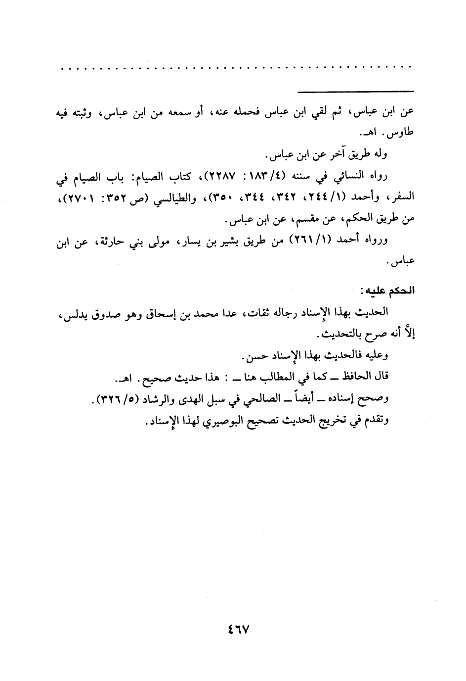رواه النسائي في سننه (4/ 183: 2287)، كتاب الصيام: باب الصيام في السفر، وأحمد (1/ 244،342، 344، 350)، والطيالسي (ص 352: 2701)،