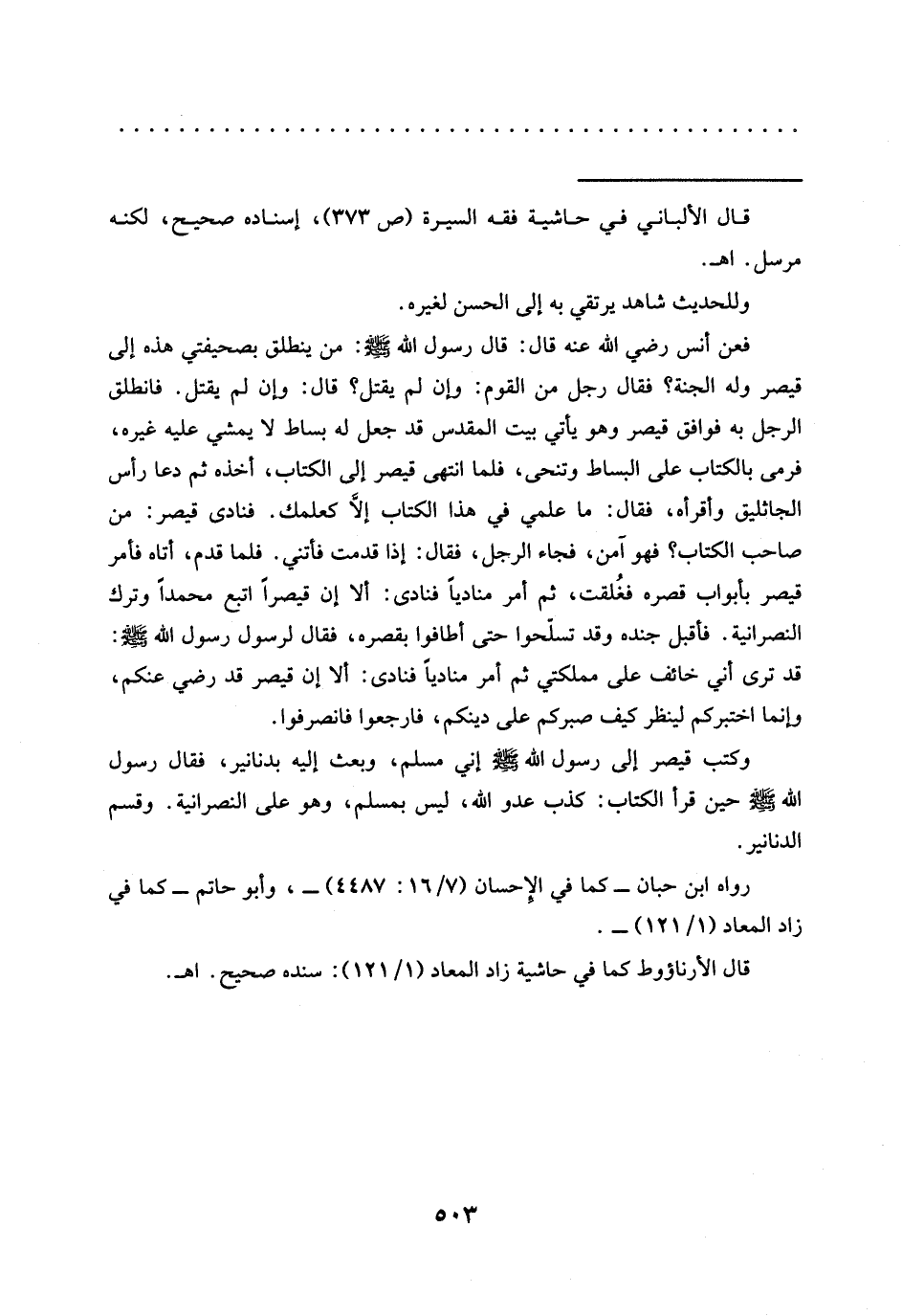 وكتب قيصر إلى رسول الله -صلى الله عليه وسلم- إني مسلم، وبعث إليه بدنانير، فَقَالَ رَسُولُ اللَّهِ -صَلَّى اللَّهُ عَلَيْهِ وَسَلَّمَ- حين قرأ الكتاب: كذب عدو الله، ليس بمسلم، وهو على النصرانية. وقسم الدنانير.