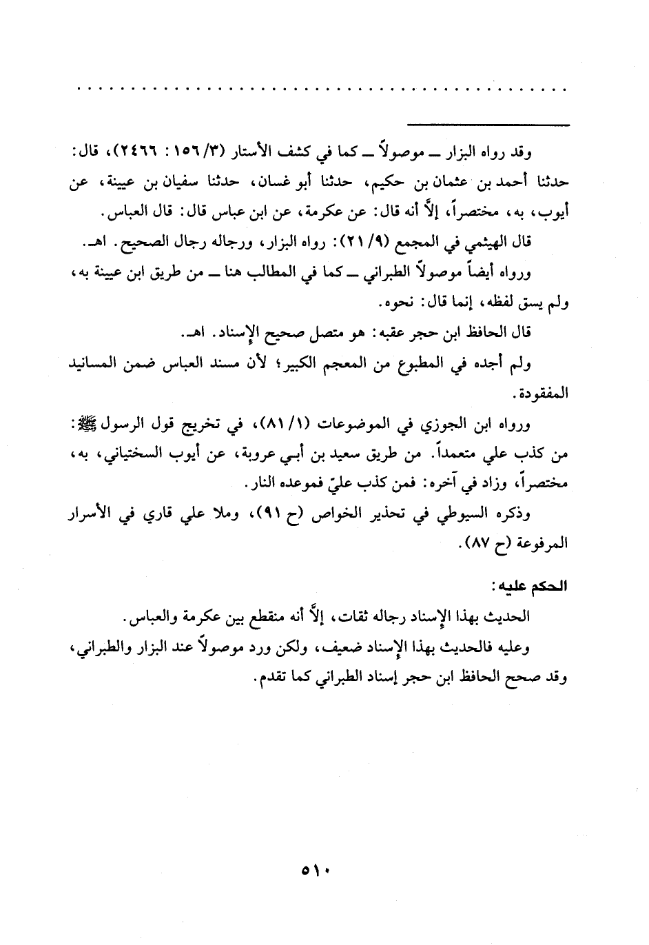 = وقد رواه البزّار -موصولًا- كما في كشف الأستار (3/ 156: 2466)، قال: حدَّثنا أحمد بن عثمان بن حكيم، حدَّثنا أبو غسان، حدَّثنا سفيان بن عيينة، عن أيوب، به، مختصرًا، إلَّا أنه قال: عَنْ عِكْرِمَةَ، عَنِ ابْنِ عَبَّاسٍ قَالَ: قَالَ العباس.
