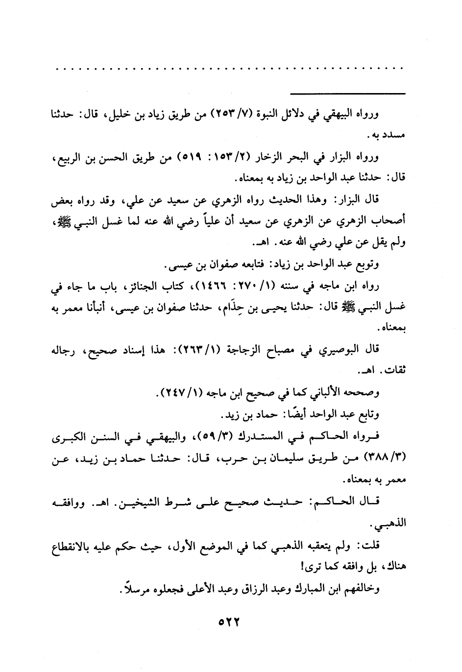 قال البزّار: وهذا الحديث رواه الزهري عن سعيد عن علي، وقد رواه بعض أصحاب الزهري عن الزهري عن سعيد أن عليًا رضي الله عنه لما غسل النبي -صلى الله عليه وسلم-، ولم يقل عن علي رضي الله عنه. اهـ.