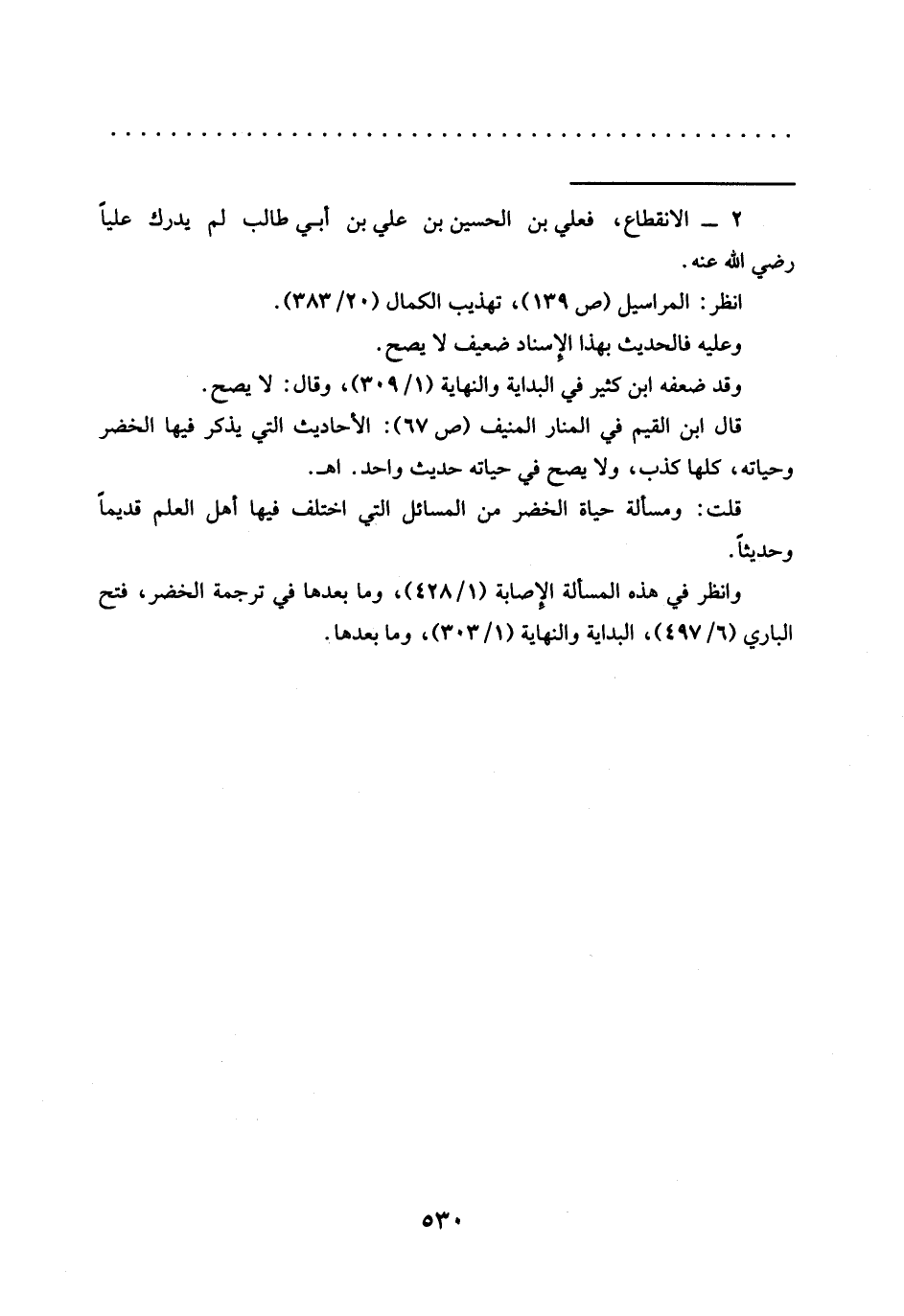 وانظر في هذه المسألة الإِصابة (1/ 428)، وما بعدها في ترجمة الخضر، فتح الباري (6/ 497)، البداية والنهاية (1/ 303)، وما بعدها.