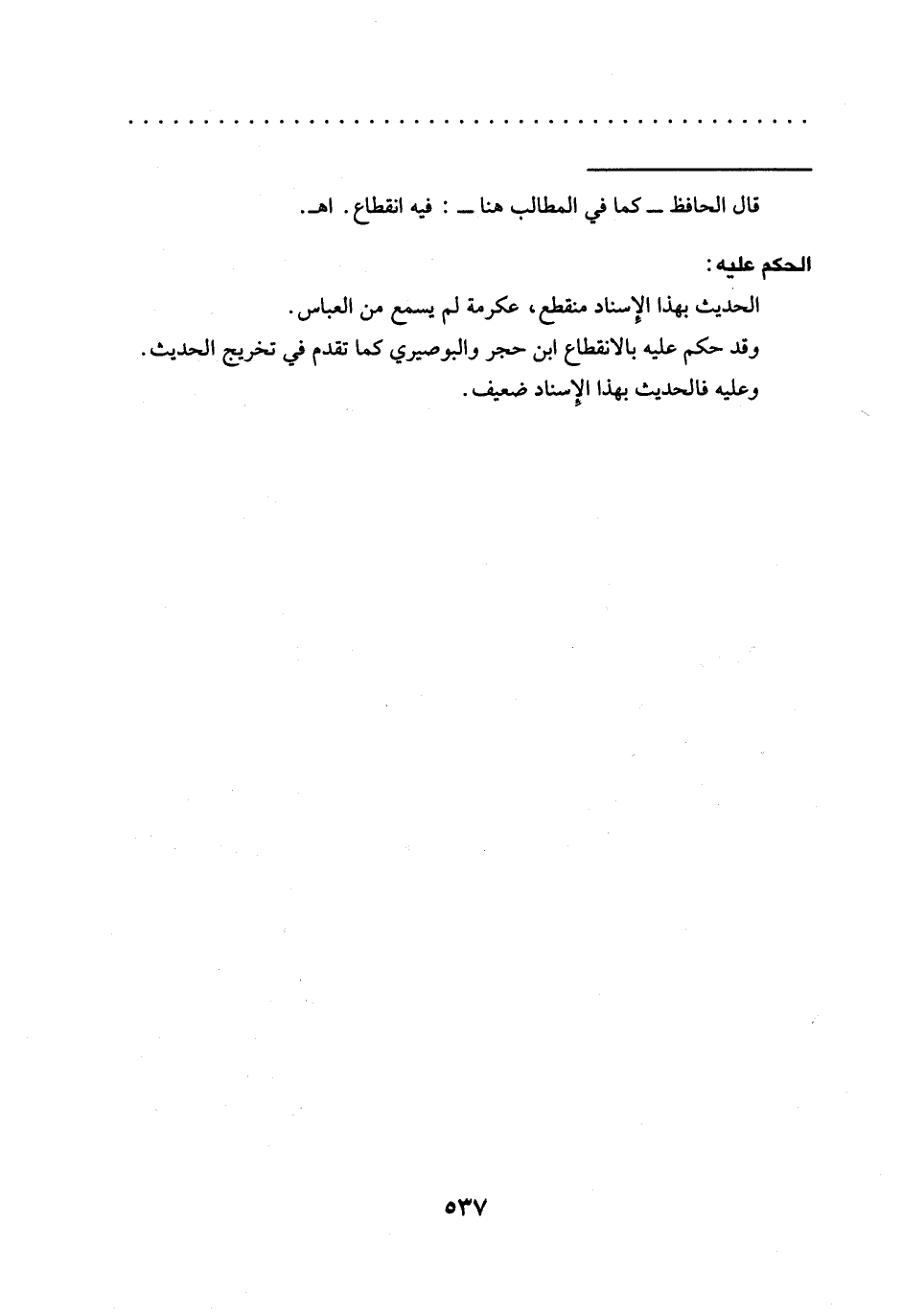= قال الحافظ -كما في المطالب هنا-: فيه انقطاع. اهـ.