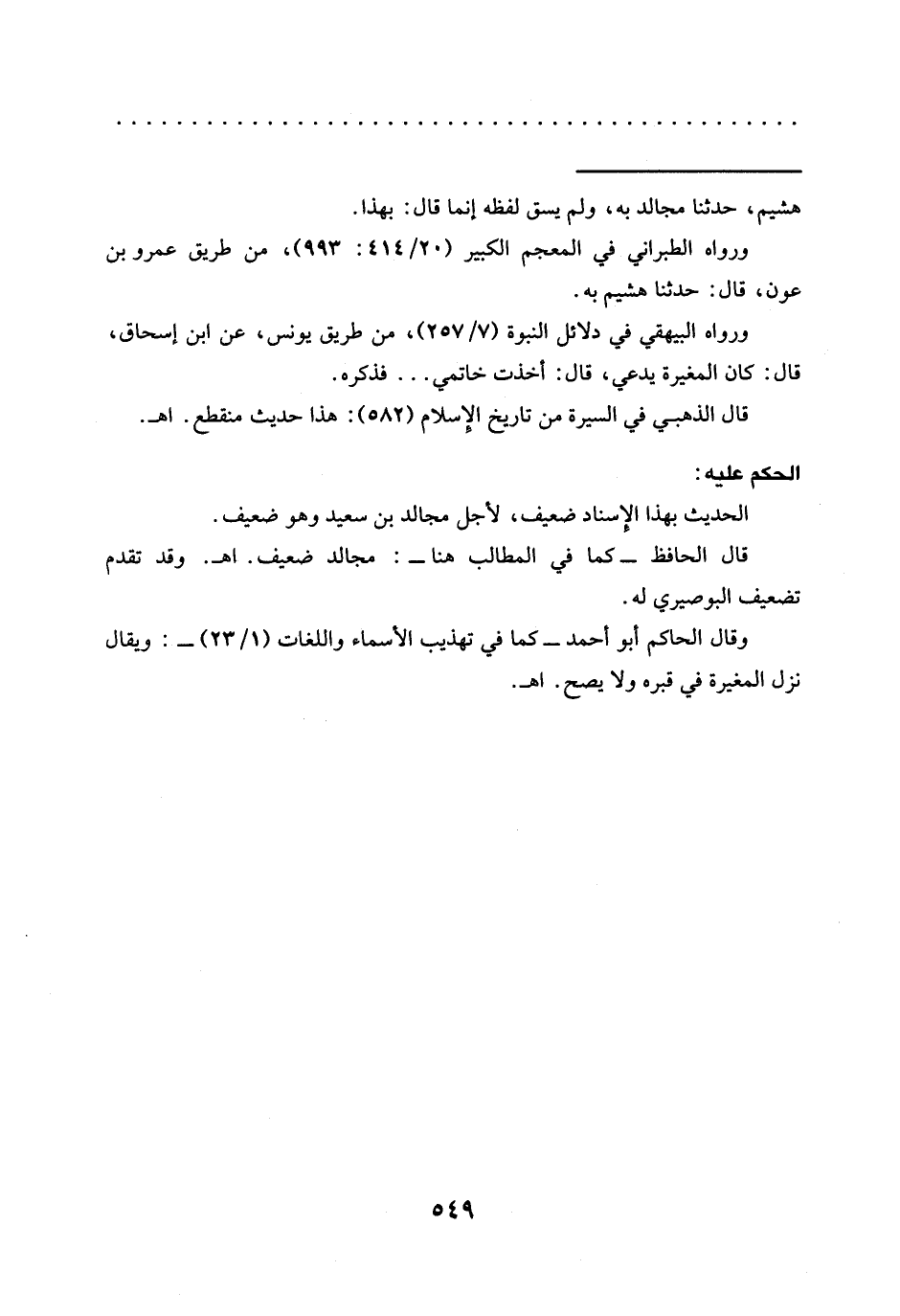 = هشيم، حدَّثنا مجالد به، ولم يسق لفظه إنما قال: بهذا.