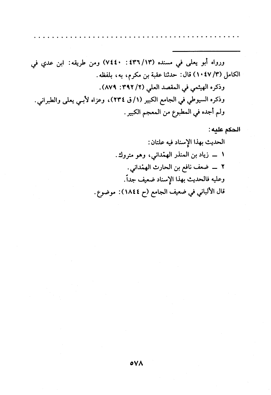= ورواه أبو يعلى في مسنده (436/ 131: 7440) ومن طريقه: ابن عدي في الكامل (3/ 1047) قال: حدَّثنا عقبة بن مكرم، به، بلفظه.