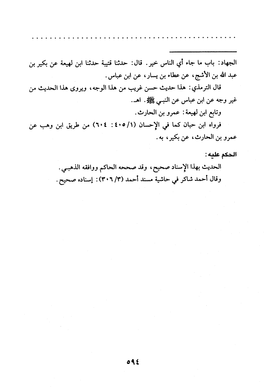 = الجهاد: باب ما جاء أي الناس خير. قال: حدَّثنا قتيبة حدَّثنا ابن لهيعة عن بكير بن عبد الله بن الأشج، عَنْ عَطَاءِ بْنِ يَسَارٍ، عَنِ ابْنِ عَبَّاسٍ.