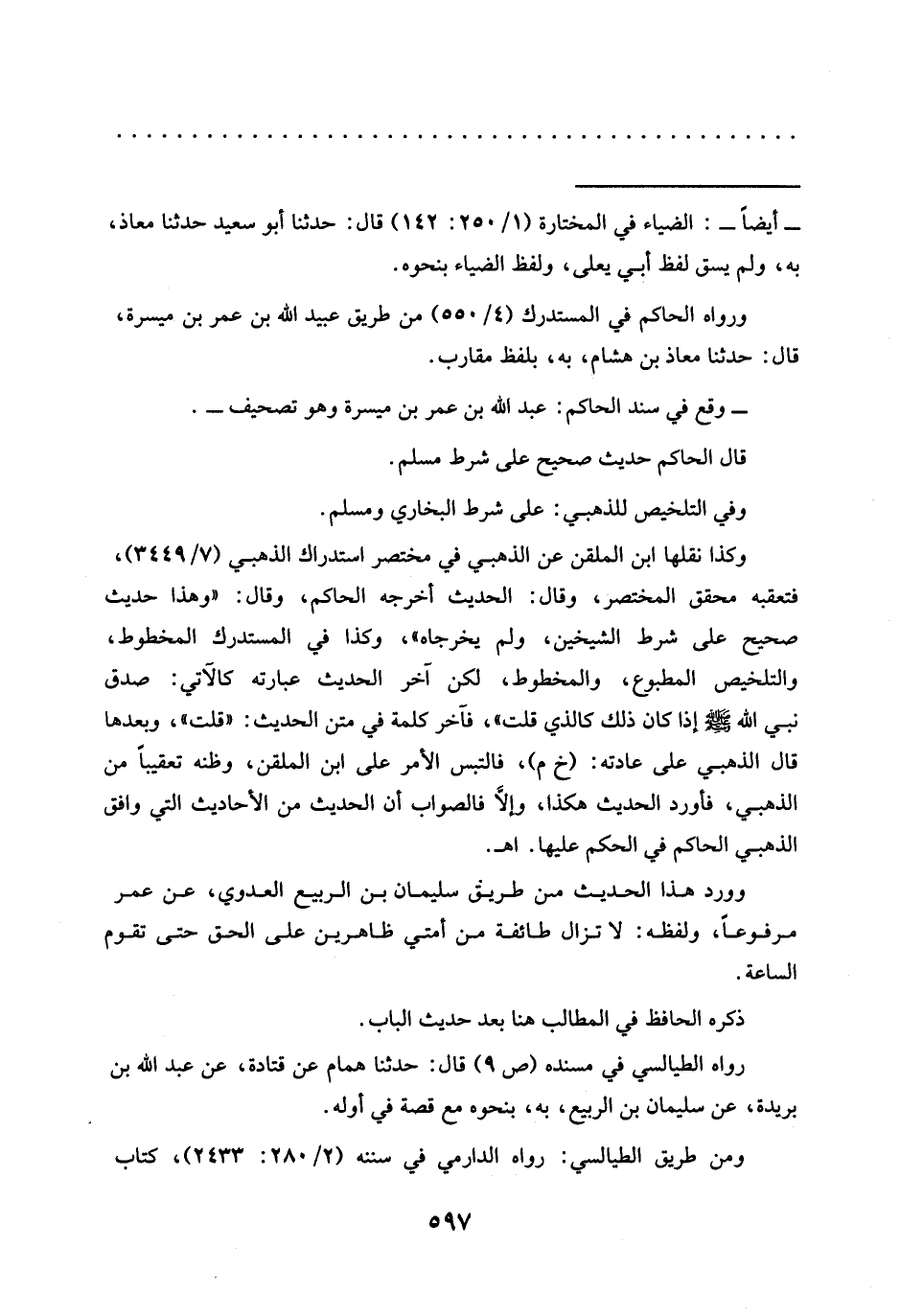 وكذا نقلها ابن الملقن عن الذهبي في مختصر استدراك الذهبي (7/ 3449)، فتعقبه محقق المختصر، وقال: الحديث أخرجه الحاكم، وقال: "وهذا حديث صحيح على شرط الشيخين، ولم يخرجاه"، وكذا في المستدرك المخطوط، والتلخيص المطبوع، والمخطوط، لكن آخر الحديث عبارته كالآتي: صَدَقَ نَبِيُّ اللَّهِ -صَلَّى اللَّهُ عَلَيْهِ وَسَلَّمَ- إِذَا كَانَ ذلك كالذي قلت"، فآخر كلمة في متن الحديث: "قلت"، وبعدها قال الذهبي على عادته: (خ م)، فالتبس الأمر على ابن الملقن، وظنه تعقيبًا من الذهبي، فأورد الحديث هكذا، والاَّ فالصواب أن الحديث من الأحاديث التي وافق الذهبي الحاكم في الحكم عليها. اهـ.
